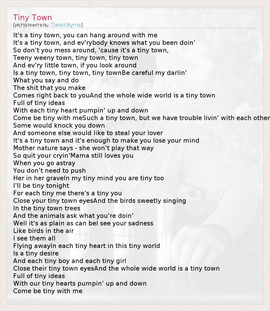 А как ты думаешь, о чем песня "Tiny Town" ?
