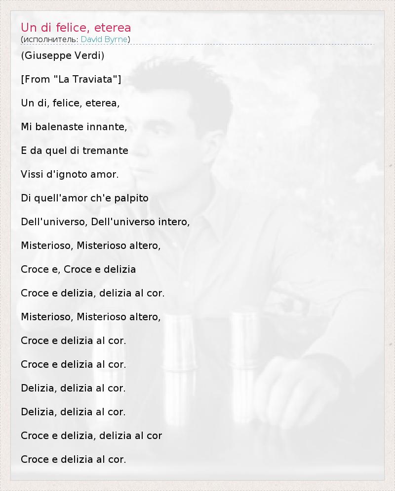 А как ты думаешь, о чем песня "Un di felice, eterea" ?