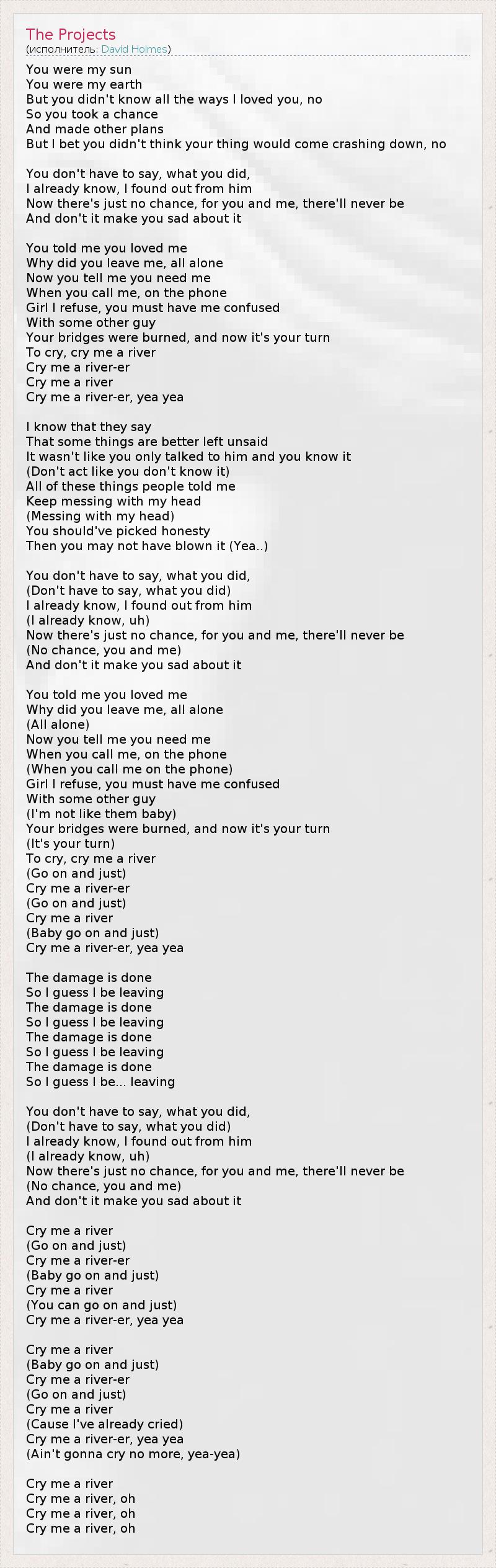 * cry somebody a river - фразеологизм (добиваться сочувствия, пуская слезу)