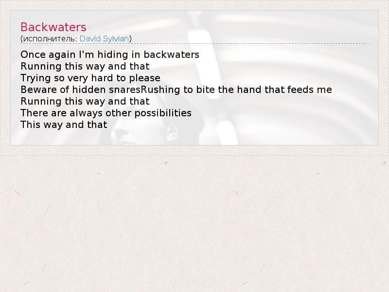 А как ты думаешь, о чем песня "Backwaters" ?