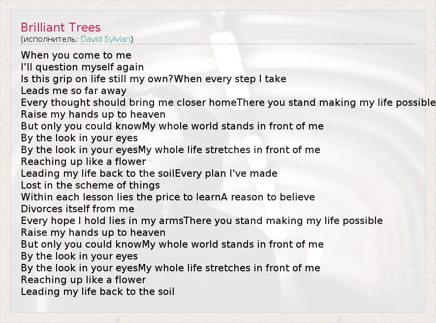 А как ты думаешь, о чем песня "Brilliant Trees" ?