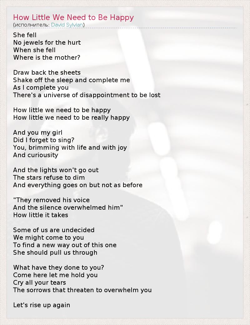 А как ты думаешь, о чем песня "How Little We Need to Be Happy" ?