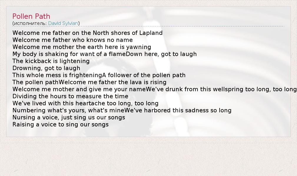 А как ты думаешь, о чем песня "Pollen Path" ?