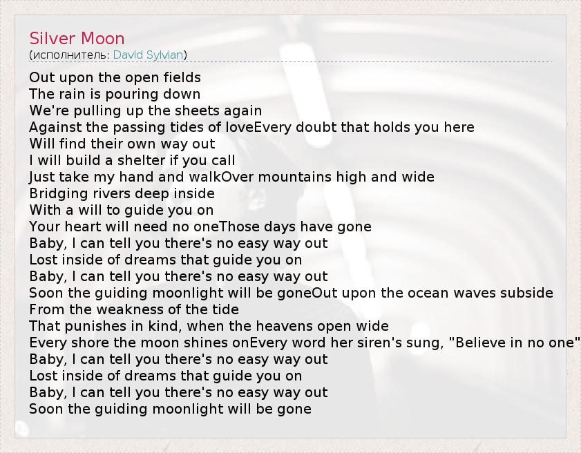 А как ты думаешь, о чем песня "Silver Moon" ?