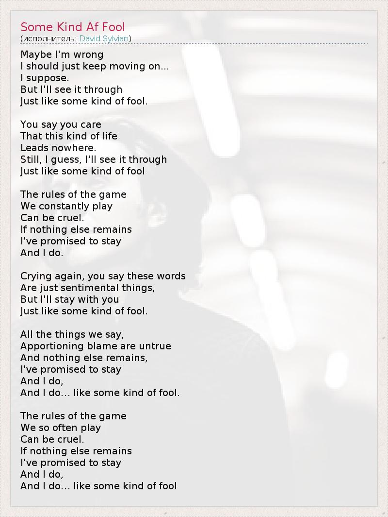 А как ты думаешь, о чем песня "Some Kind Af Fool" ?