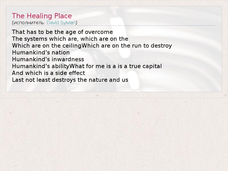 А как ты думаешь, о чем песня "The Healing Place" ?