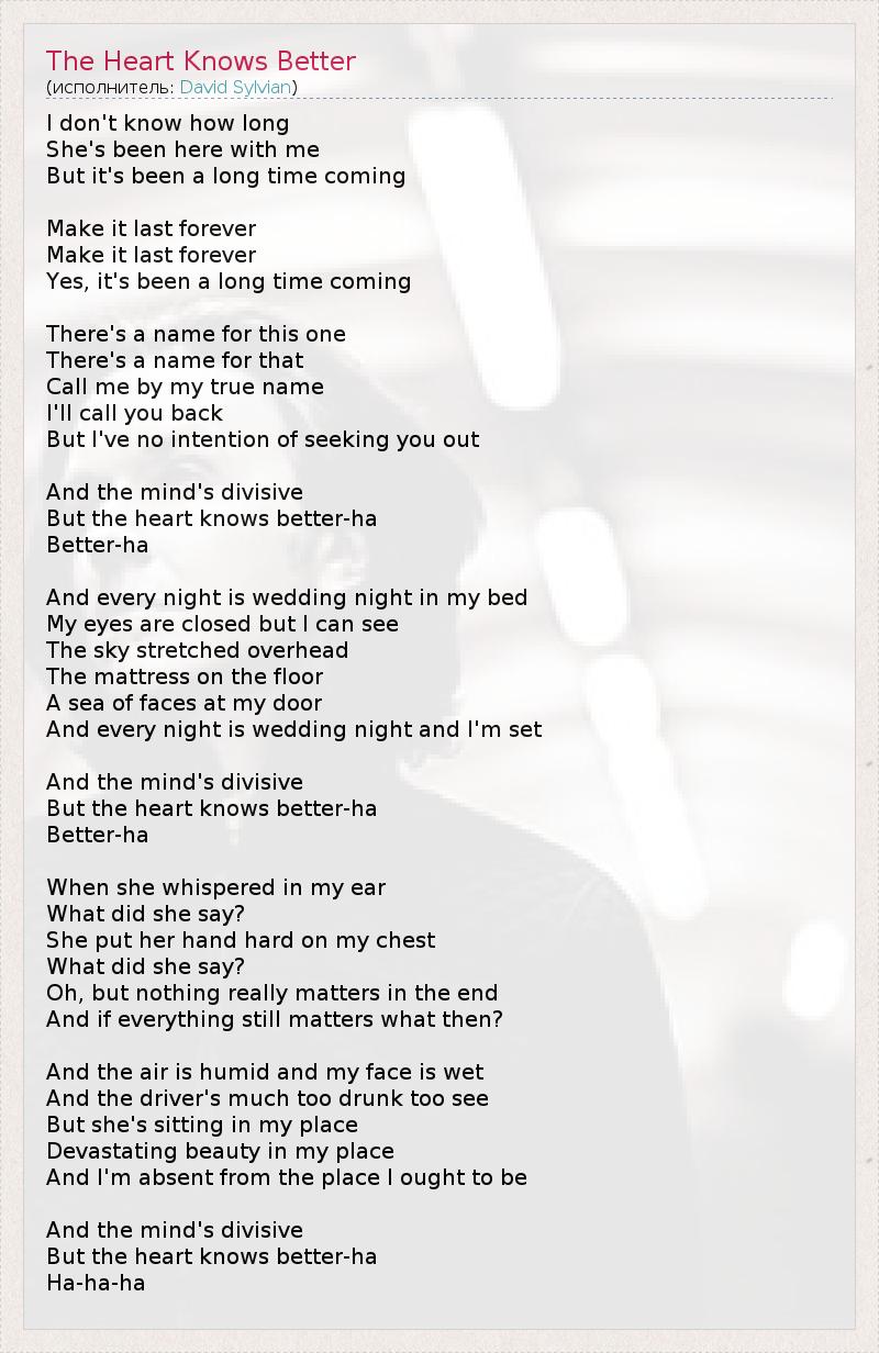 А как ты думаешь, о чем песня "The Heart Knows Better" ?