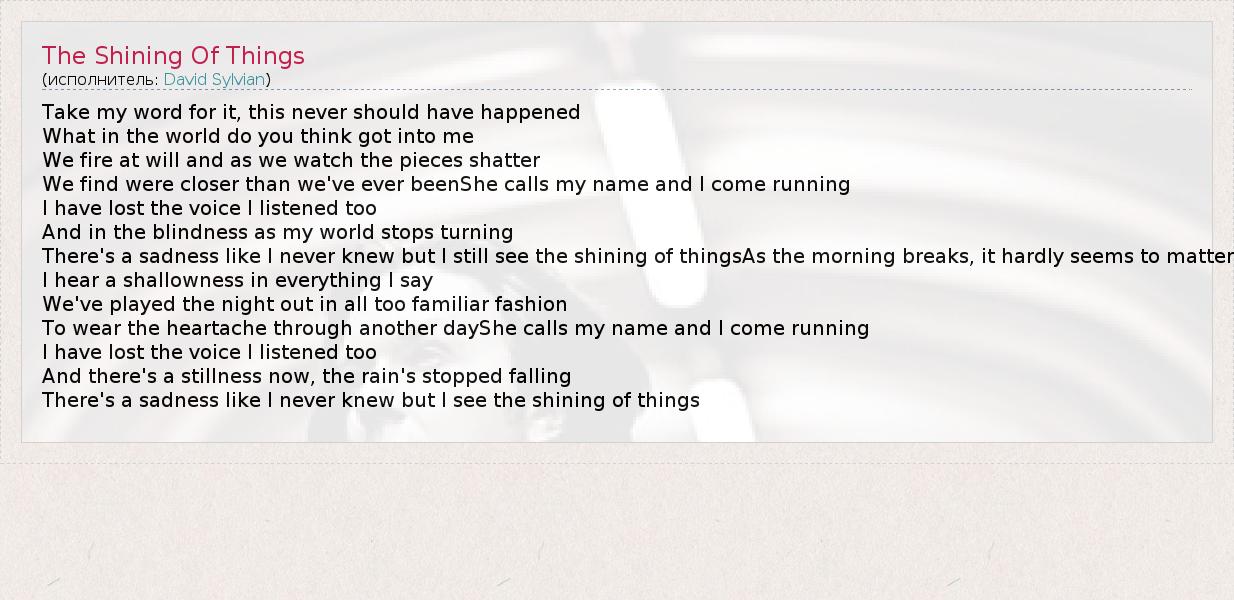 А как ты думаешь, о чем песня "The Shining Of Things" ?