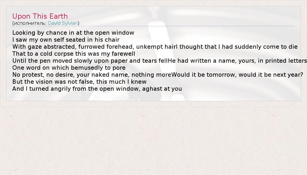 А как ты думаешь, о чем песня "Upon This Earth" ?