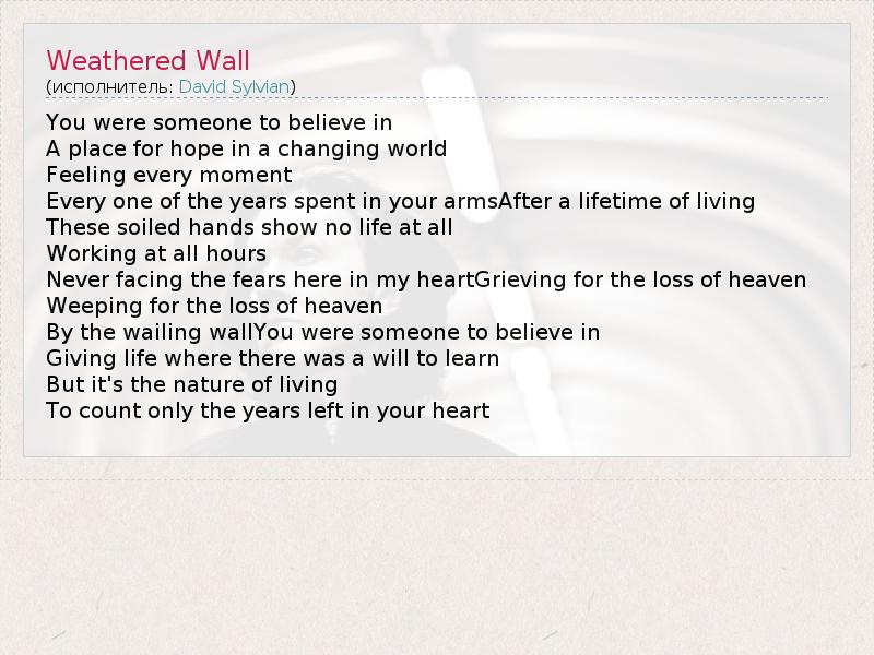 А как ты думаешь, о чем песня "Weathered Wall" ?