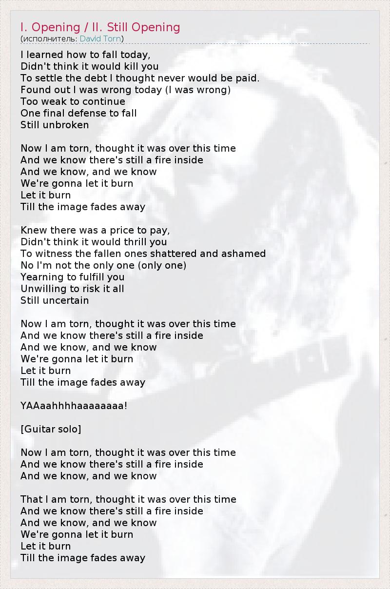 ГлавнаяИсполнителиDavid TornI. Opening / II. Still Opening