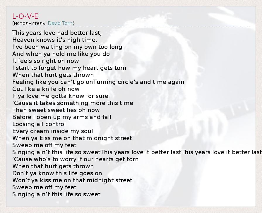 Singing ain't this life so sweetThis years love it better lastThis years love it better last