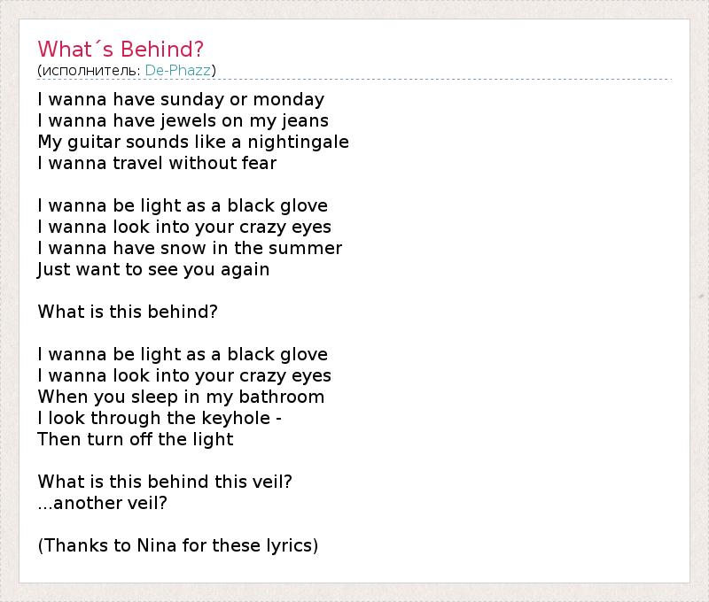 А как ты думаешь, о чем песня "What´s Behind?" ?