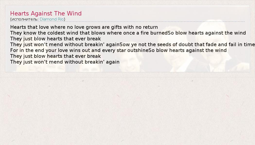 ГлавнаяИсполнителиDiamond RioHearts Against The Wind