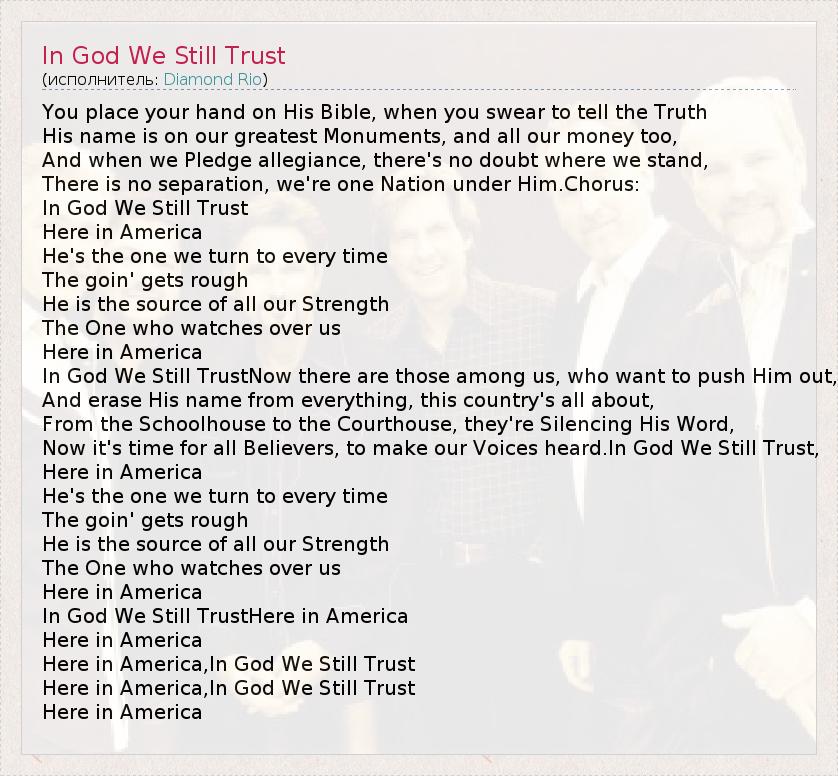 In God We Still TrustNow there are those among us, who want to push Him out,