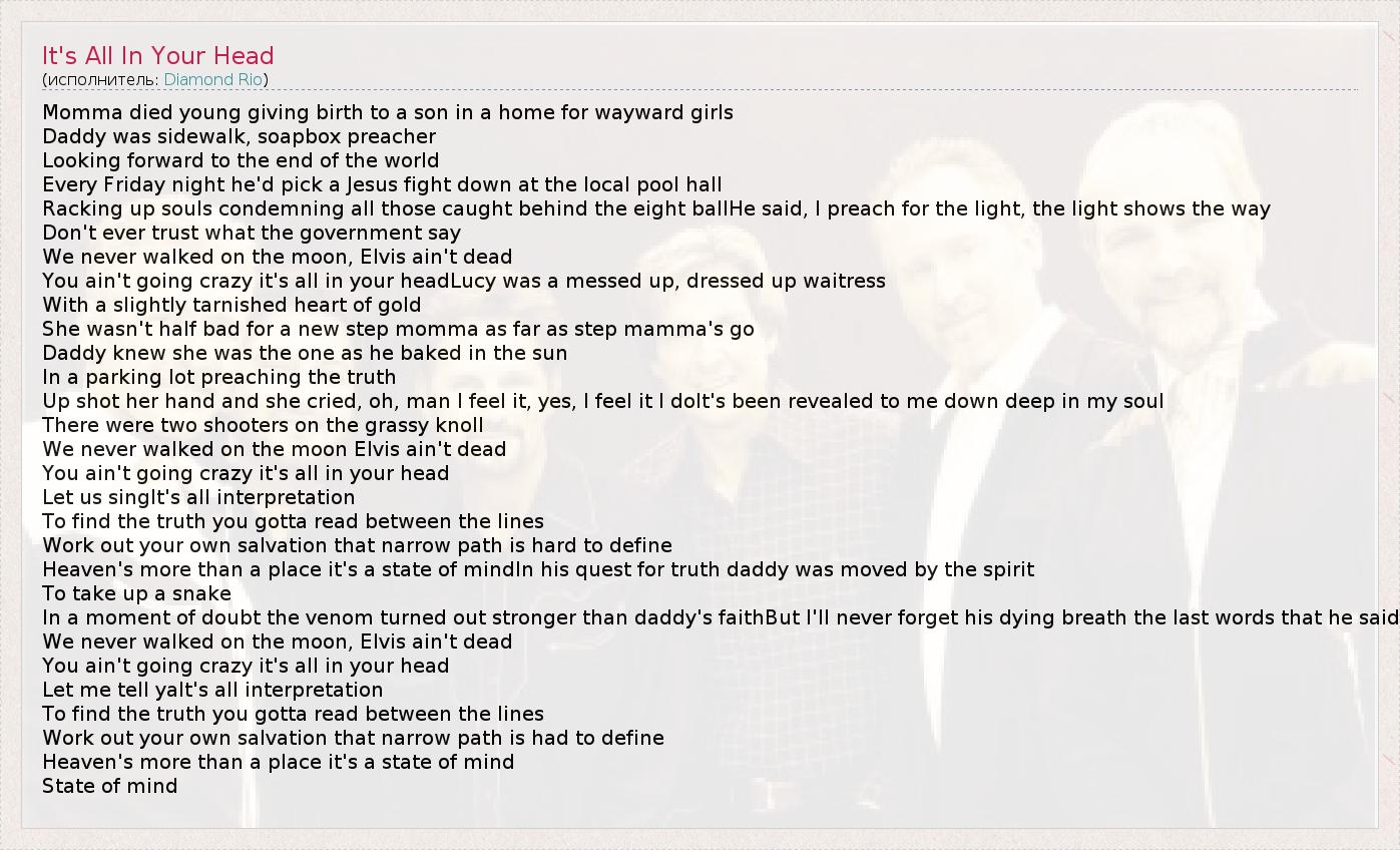 А как ты думаешь, о чем песня "It's All In Your Head" ?