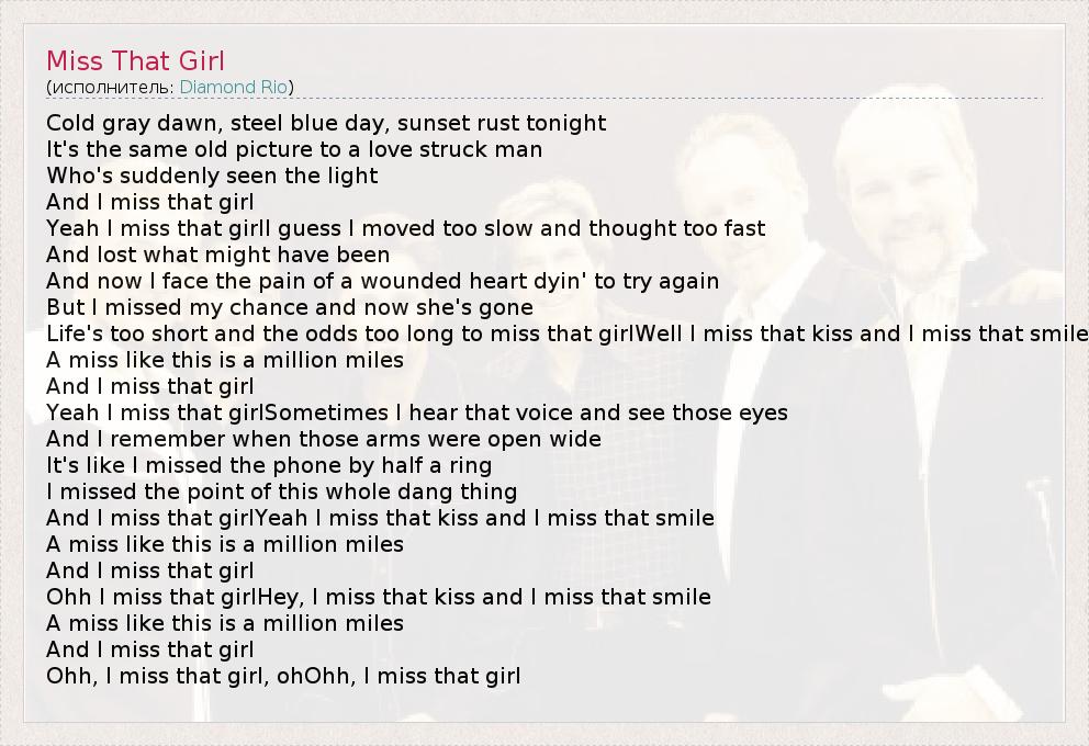 А как ты думаешь, о чем песня "Miss That Girl" ?