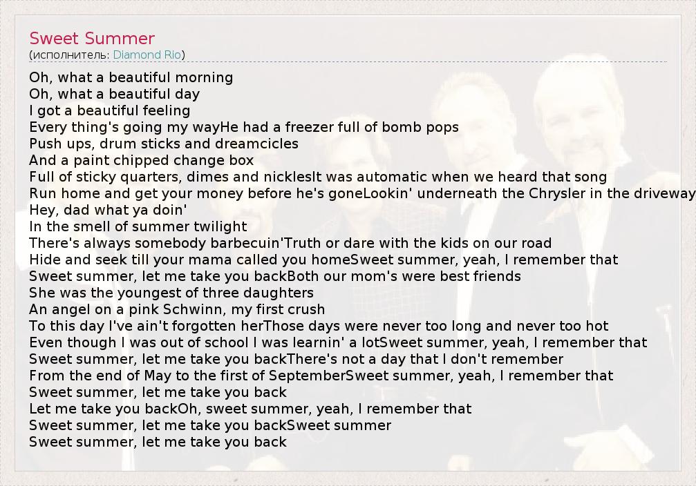 А как ты думаешь, о чем песня "Sweet Summer" ?