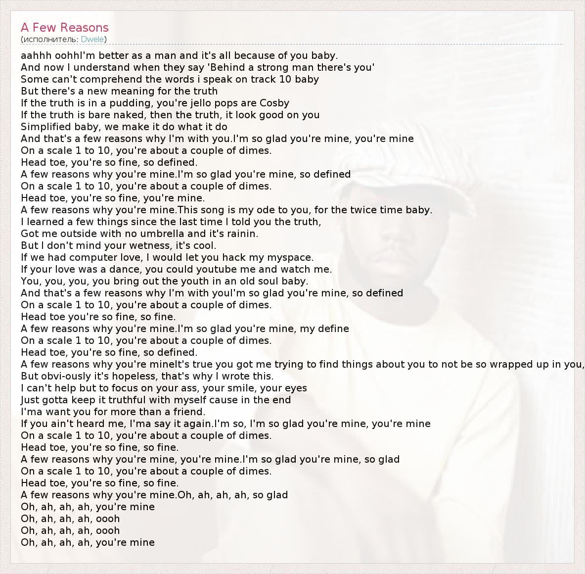 А как ты думаешь, о чем песня "A Few Reasons" ?