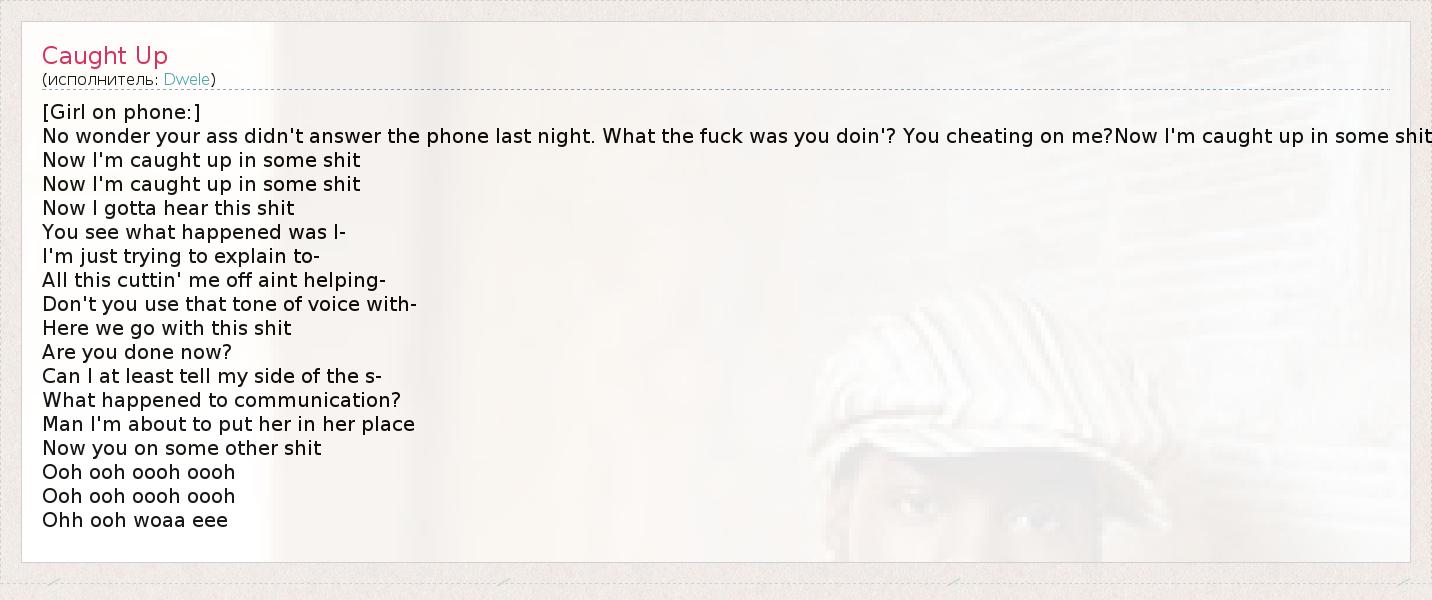 No wonder your ass didn't answer the phone last night. What the fuck was you doin'? You cheating on me?Now I'm caught up in some shit