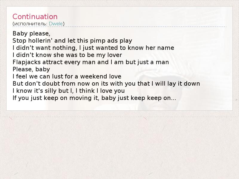 La Inquietud... см. текст песни )  Өмірімнің мәнісің(с текстом) _Өmіrіmnің_mәnіsің  Дисс на Ивангая  KeshYou_Баллер  SHALA LA LA (2018)[insta:beknur.azimbek]  Доставляет!(текст)  La Camisa Negra ( по-русски)  Ah!Yah!Mah!  Шаг за 20 руки мокрые мне не хватит  [2007 - El secreto de las tortugas] - 6. La raya  Пластинка