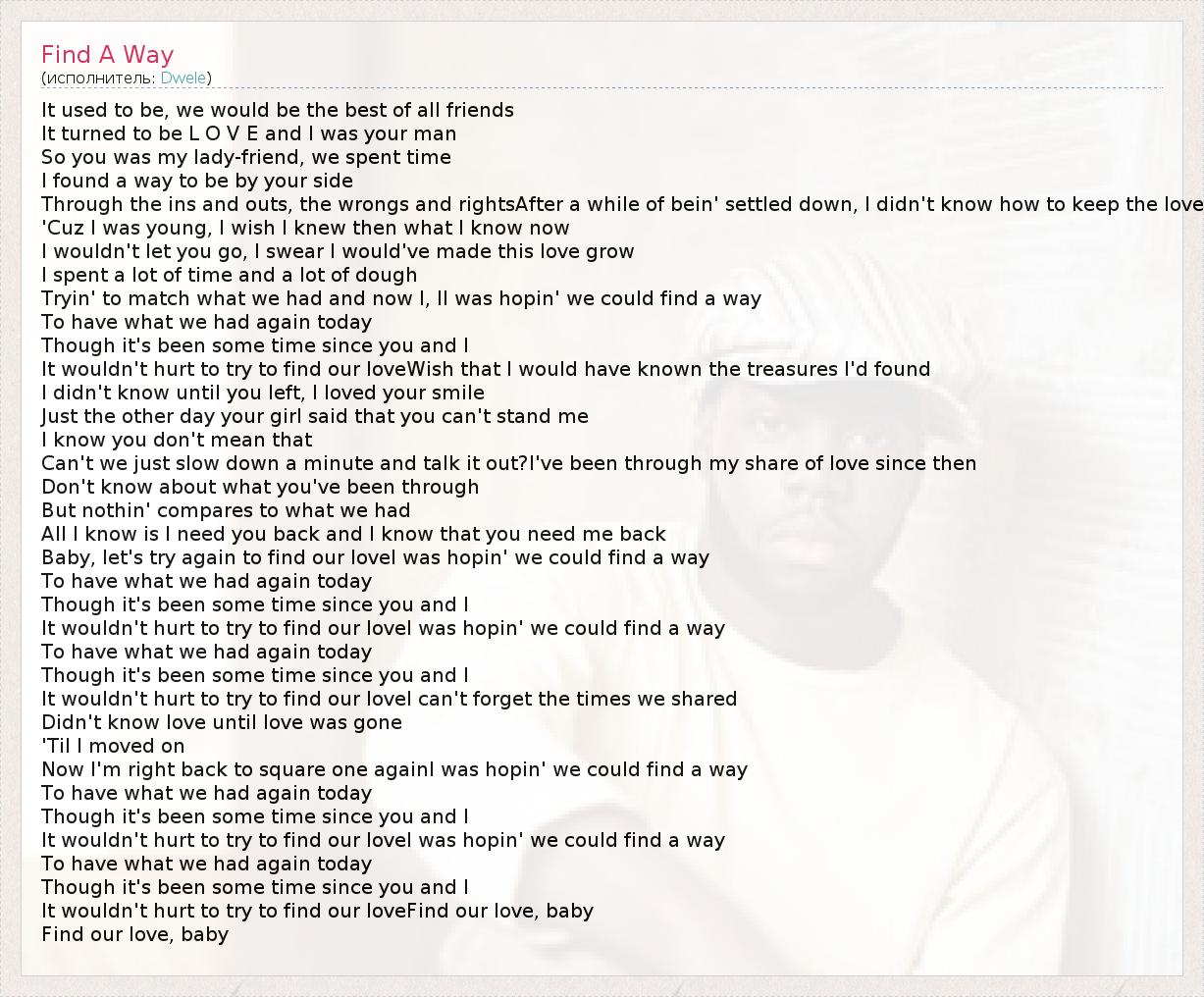 А как ты думаешь, о чем песня "Find A Way" ?