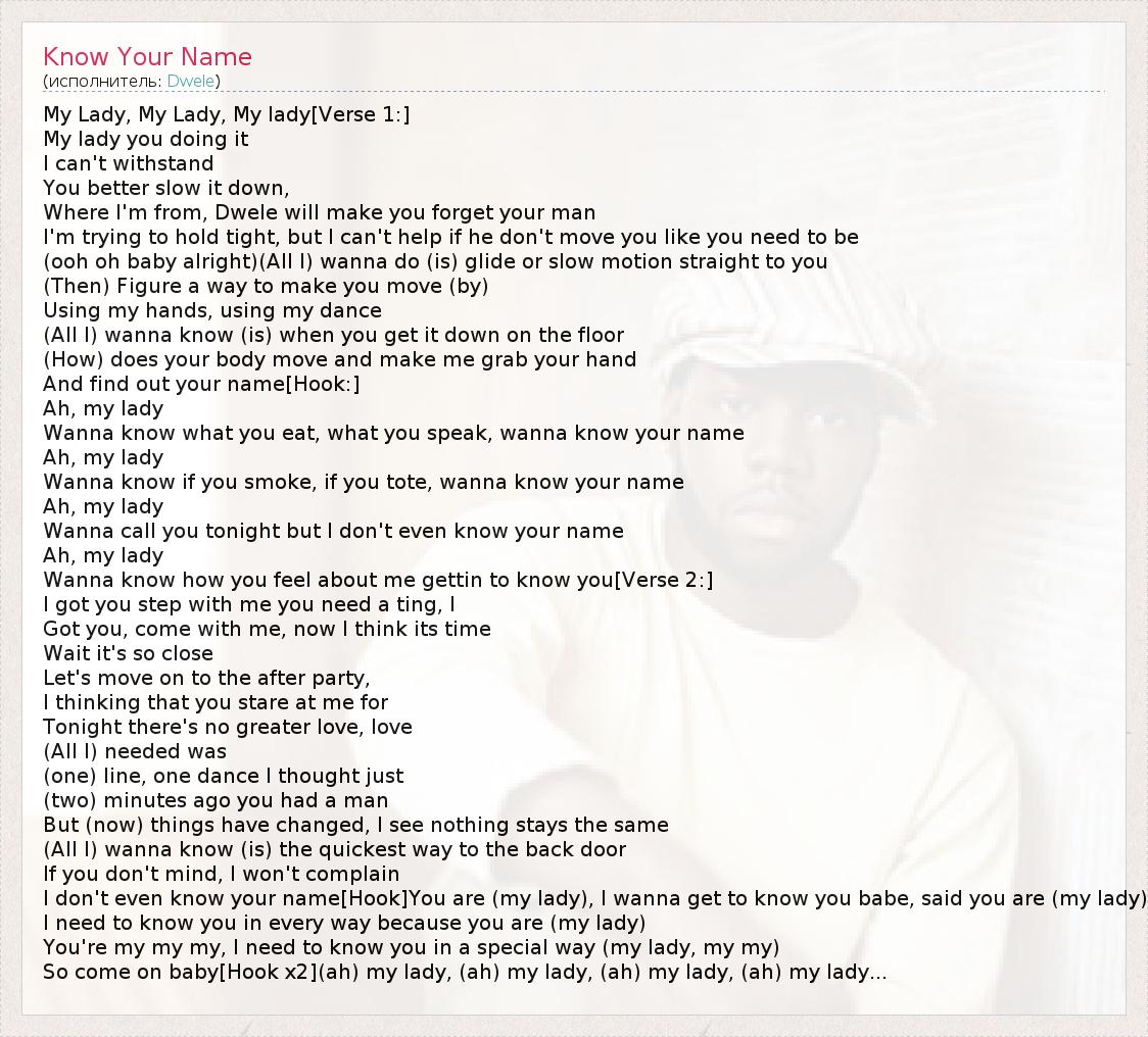 I don't even know your name[Hook]You are (my lady), I wanna get to know you babe, said you are (my lady)