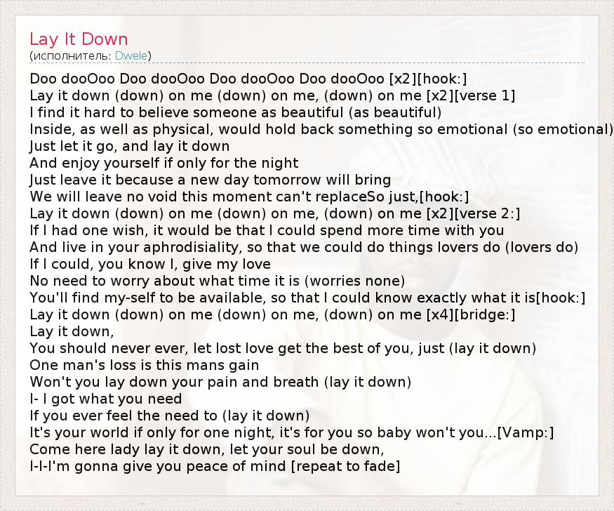 А как ты думаешь, о чем песня "Lay It Down" ?