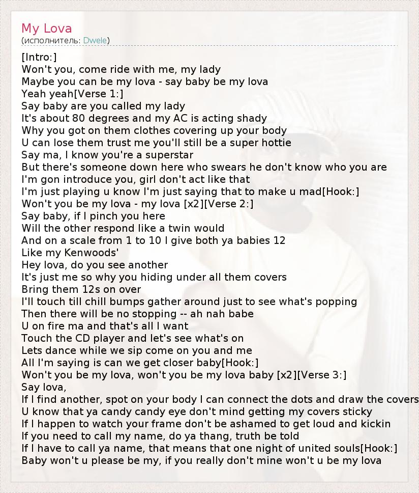 Won't you be my lova, won't you be my lova baby [x2][Verse 3:]