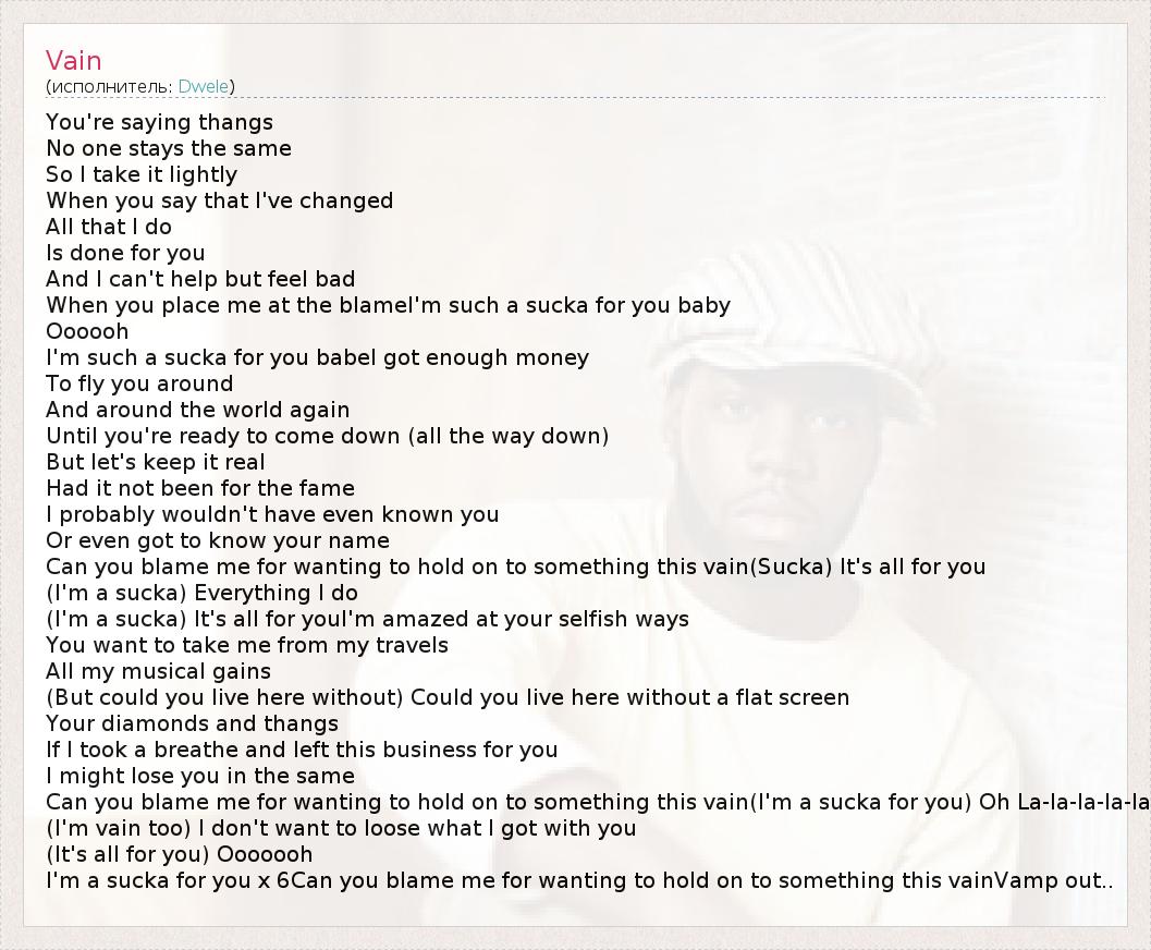 Can you blame me for wanting to hold on to something this vain(Sucka) It's all for you