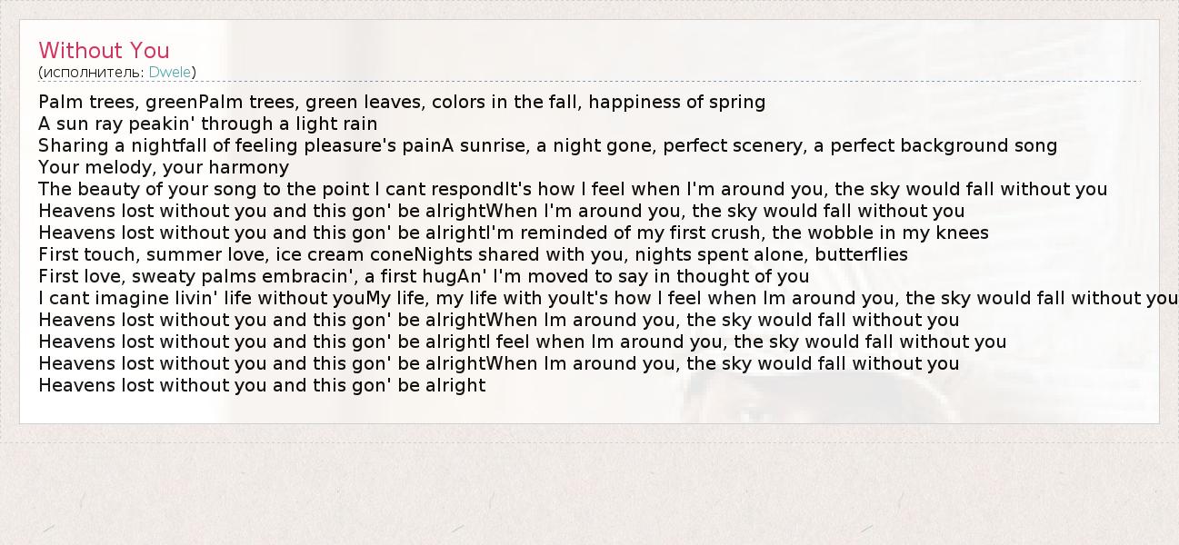 Heavens lost without you and this gon' be alrightWhen I'm around you, the sky would fall without you