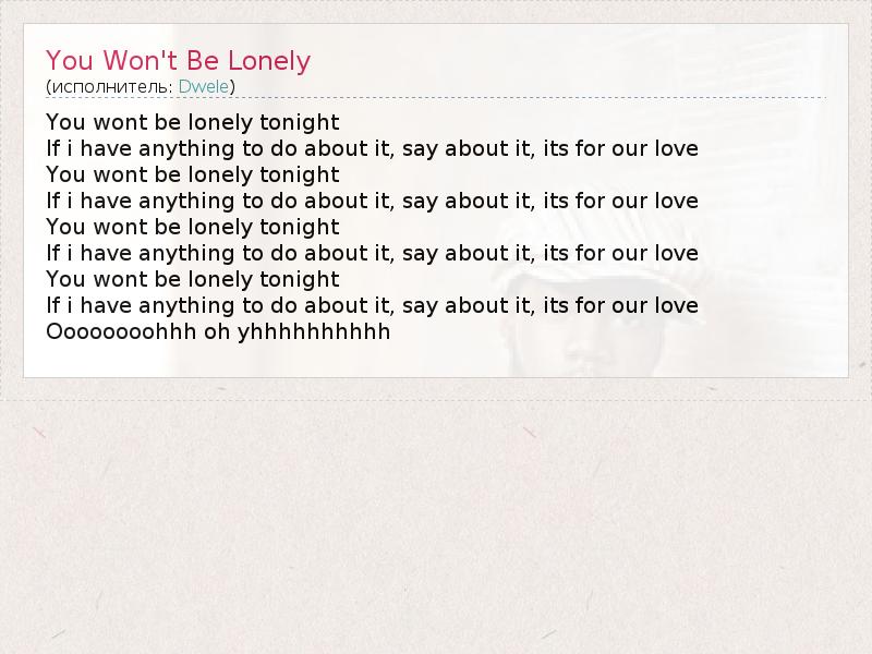 А как ты думаешь, о чем песня "You Won't Be Lonely" ?