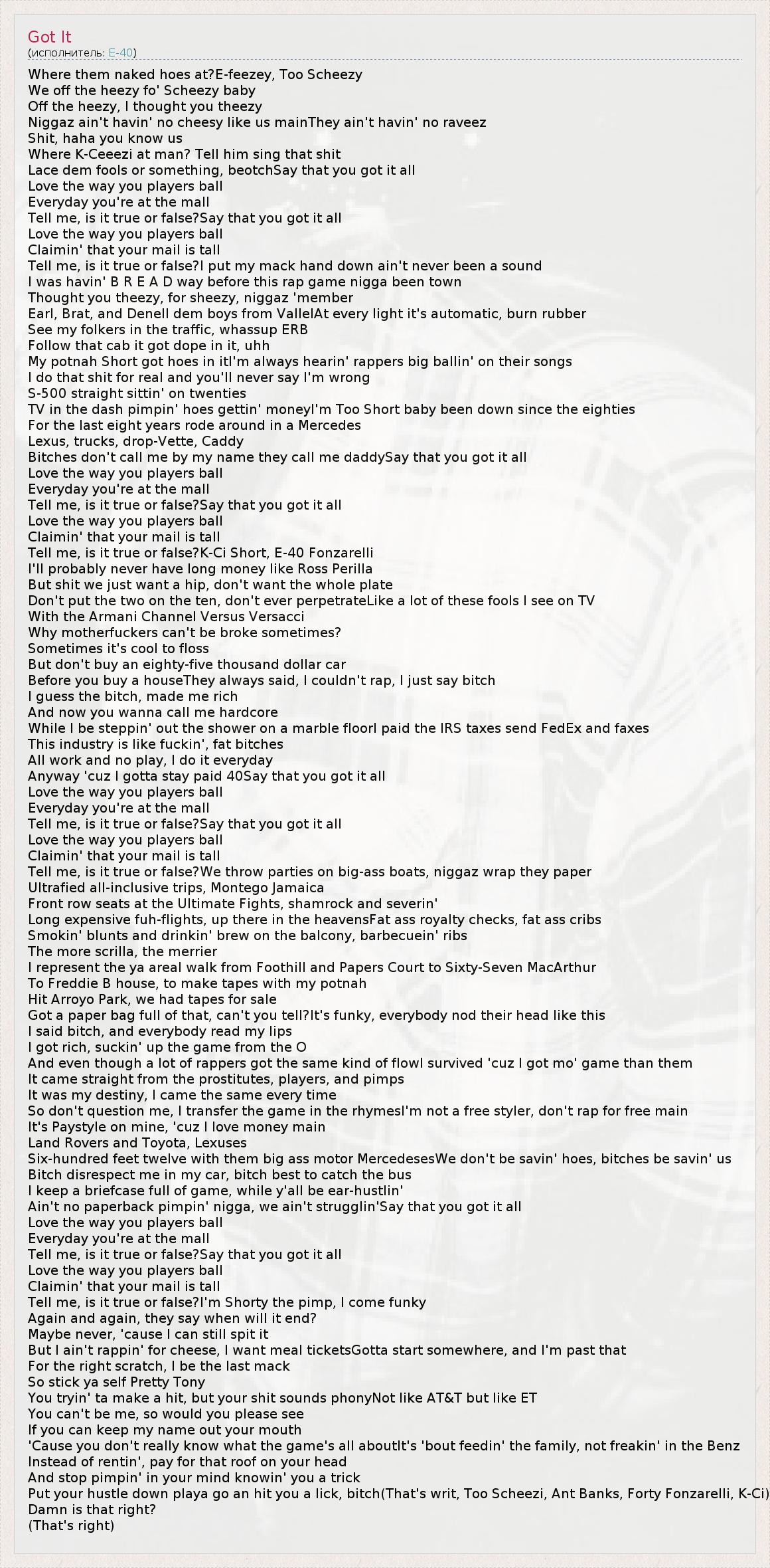 Tell me, is it true or false?K-Ci Short, E-40 Fonzarelli