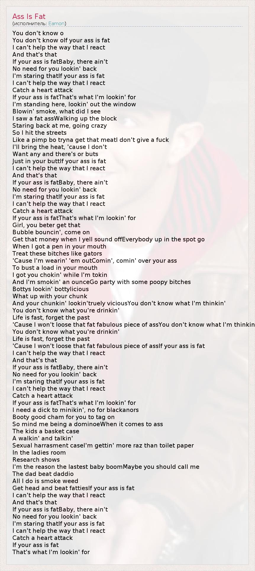 А как ты думаешь, о чем песня "Ass Is Fat" ?