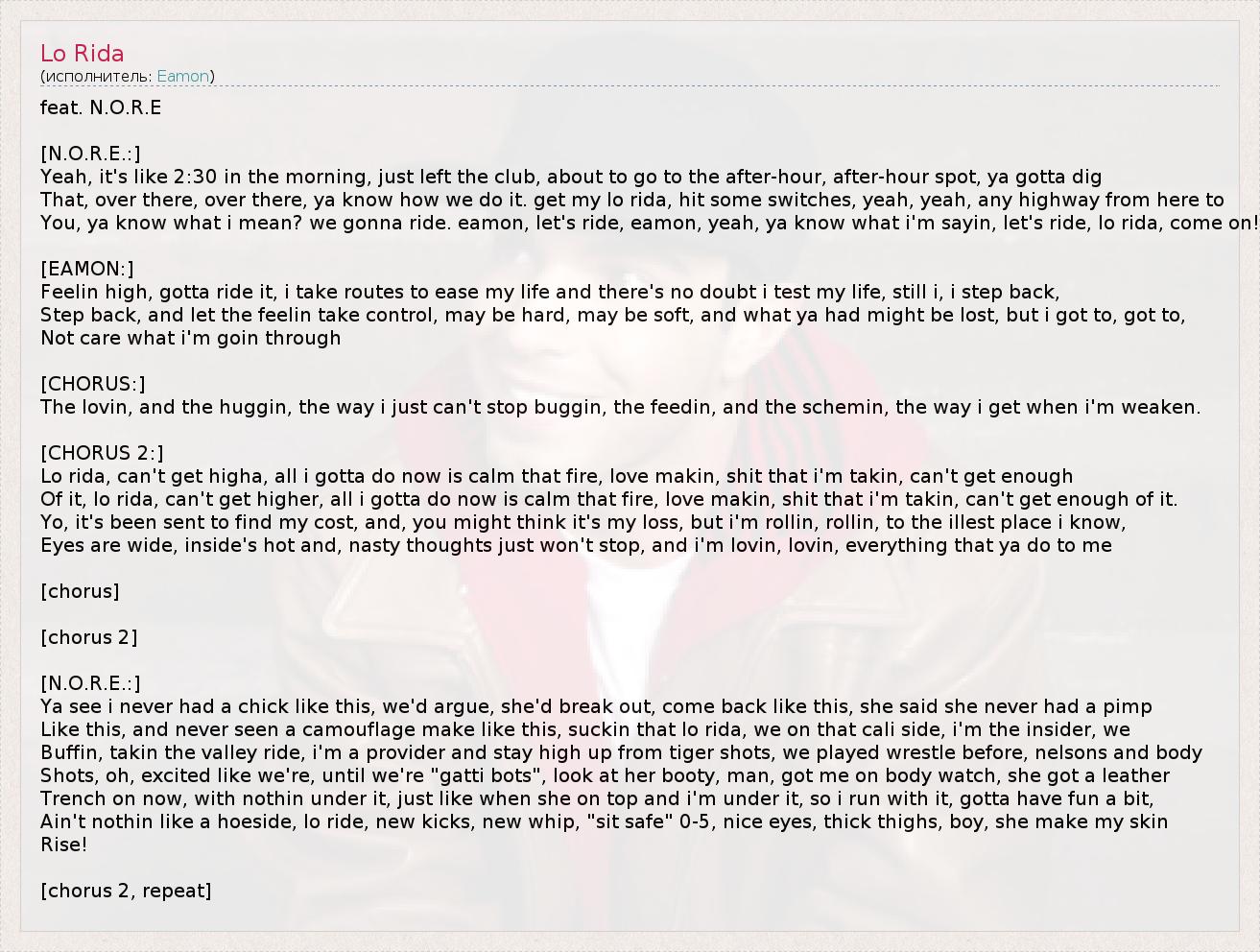 А как ты думаешь, о чем песня "Lo Rida" ?