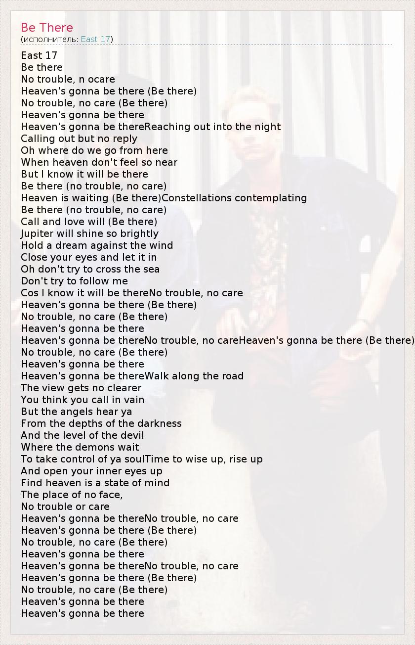 Heaven's gonna be thereNo trouble, no careHeaven's gonna be there (Be there)
