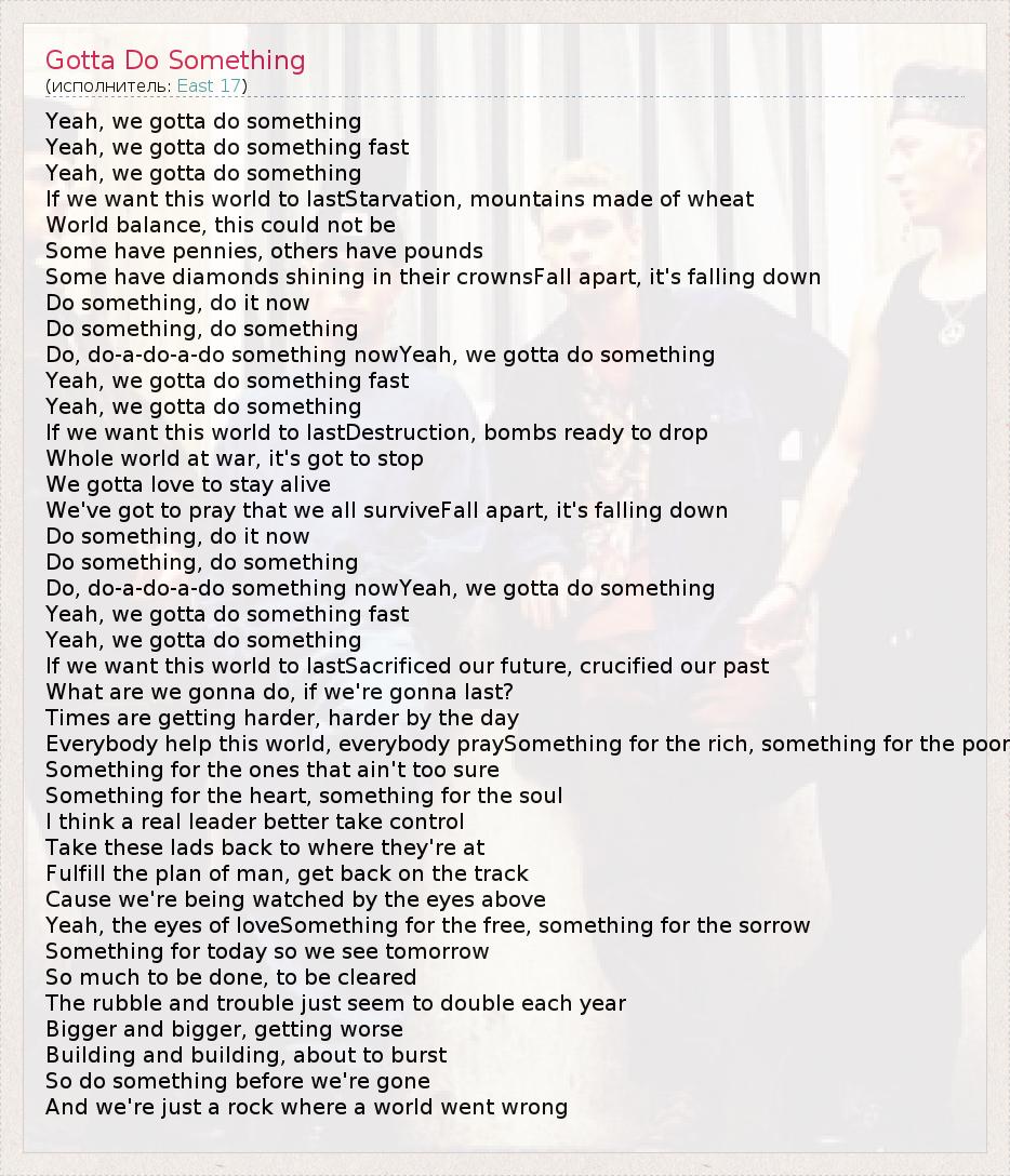 А как ты думаешь, о чем песня "Gotta Do Something" ?