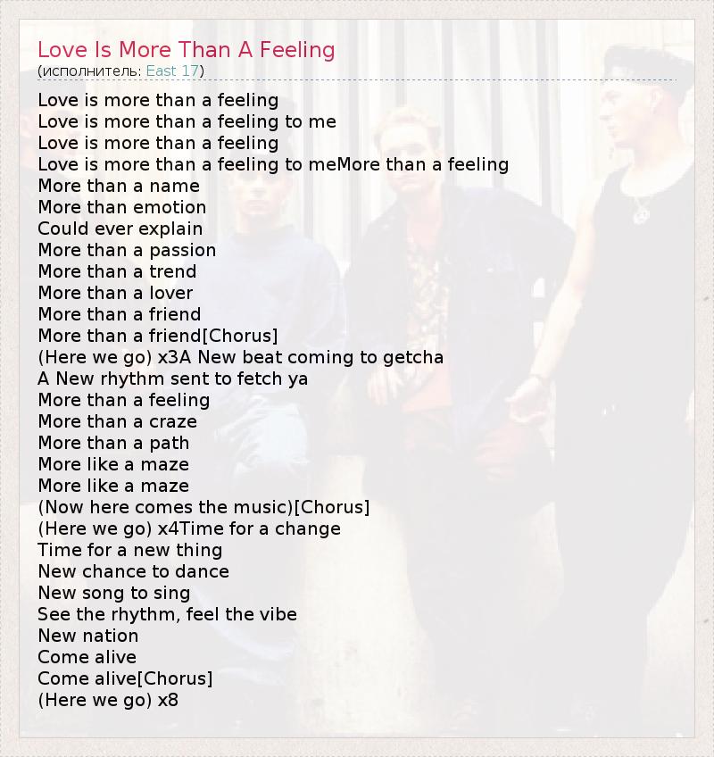 А как ты думаешь, о чем песня "Love Is More Than A Feeling" ?