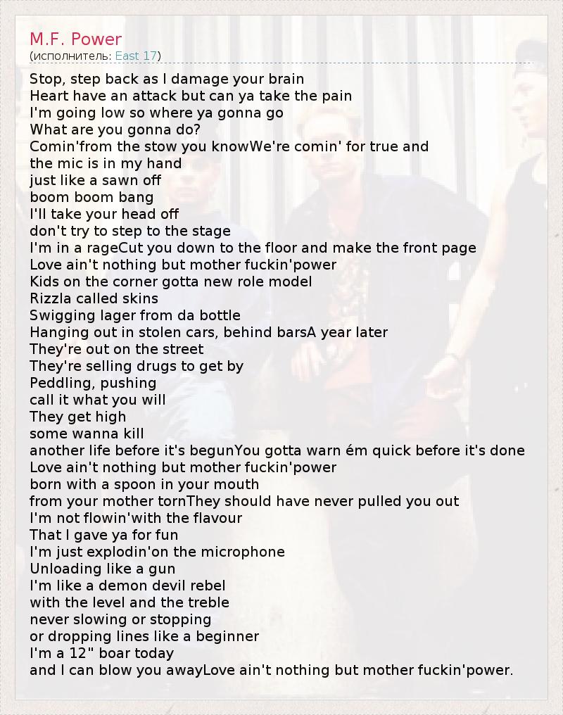 А как ты думаешь, о чем песня "M.F. Power" ?
