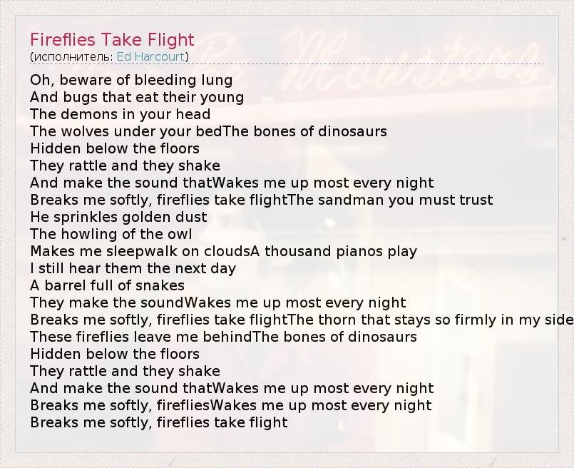 А как ты думаешь, о чем песня "Fireflies Take Flight" ?