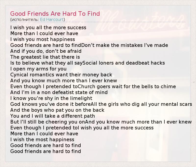 А как ты думаешь, о чем песня "Good Friends Are Hard To Find" ?