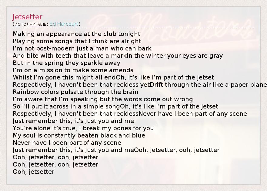 А как ты думаешь, о чем песня "Jetsetter" ?