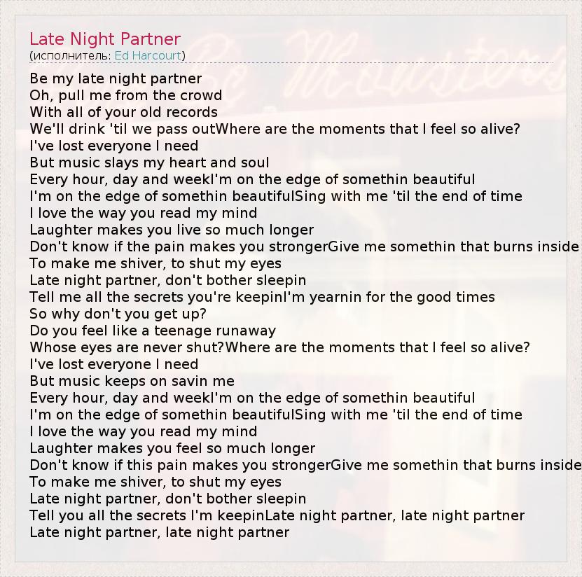 А как ты думаешь, о чем песня "Late Night Partner" ?