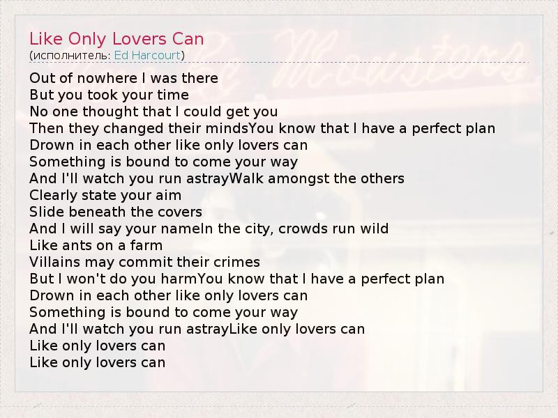 А как ты думаешь, о чем песня "Like Only Lovers Can" ?