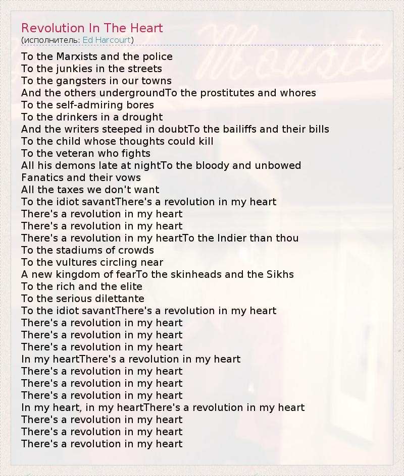 А как ты думаешь, о чем песня "Revolution In The Heart" ?