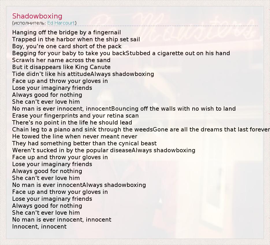 А как ты думаешь, о чем песня "Shadowboxing" ?