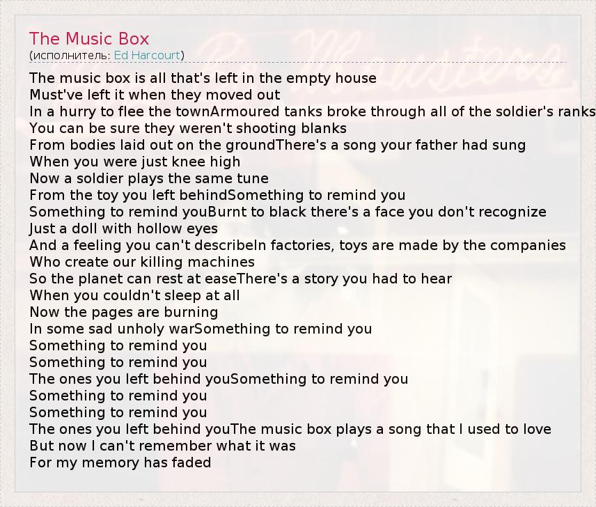 Это интересно:Эд Харкорт (рожденный 14 Августа в 1977 году) - талантливый британский певец-композитор. Играет на множестве инструментов, но следует особенно отметить его виртуозную игру на пианино.Среди звезд поклонниками его творчества являются такие группы как R.E.M и Snow Patrol, Wilco, а так же Norah Jones.Скоро на киноэкраны выйдет продолжение культового фильма "Донни Дарко" - "С. Дарко", к которому... продолжение