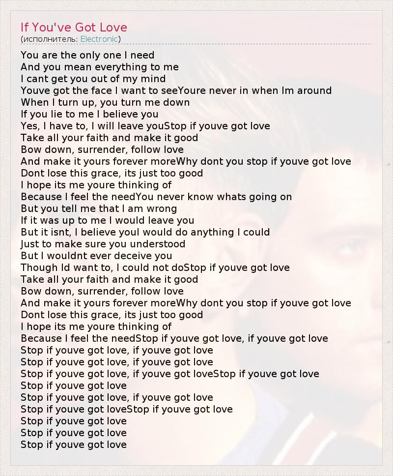 Because I feel the needStop if youve got love, if youve got love