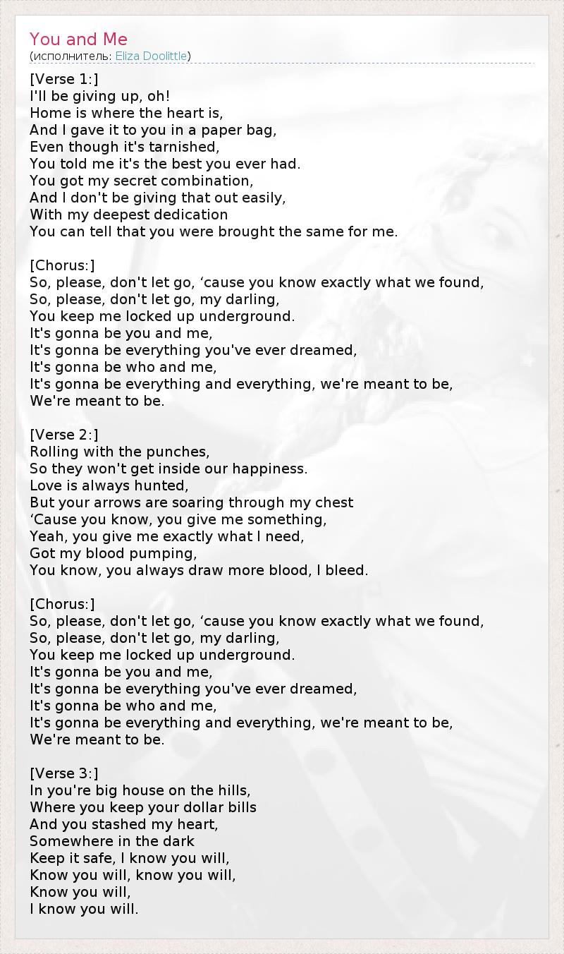 А как ты думаешь, о чем песня "You and Me" ?