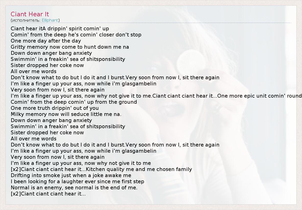 А как ты думаешь, о чем песня "Ciant Hear It" ?